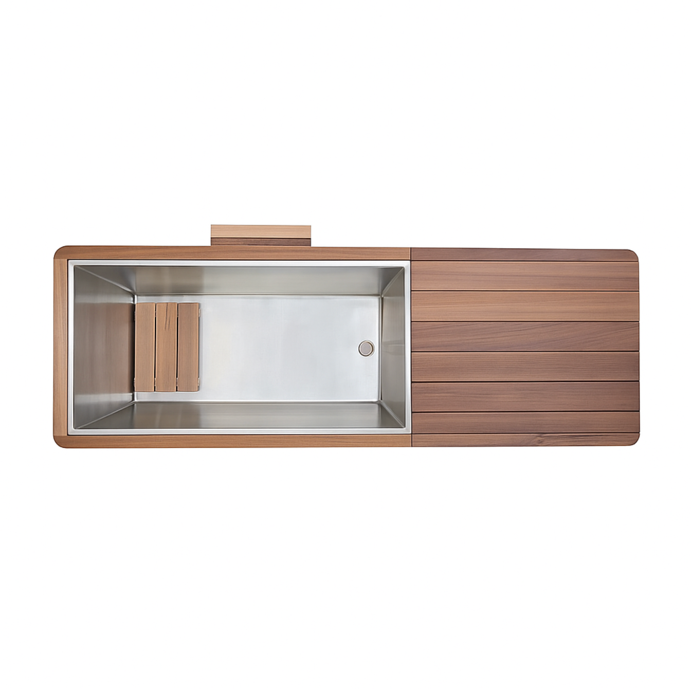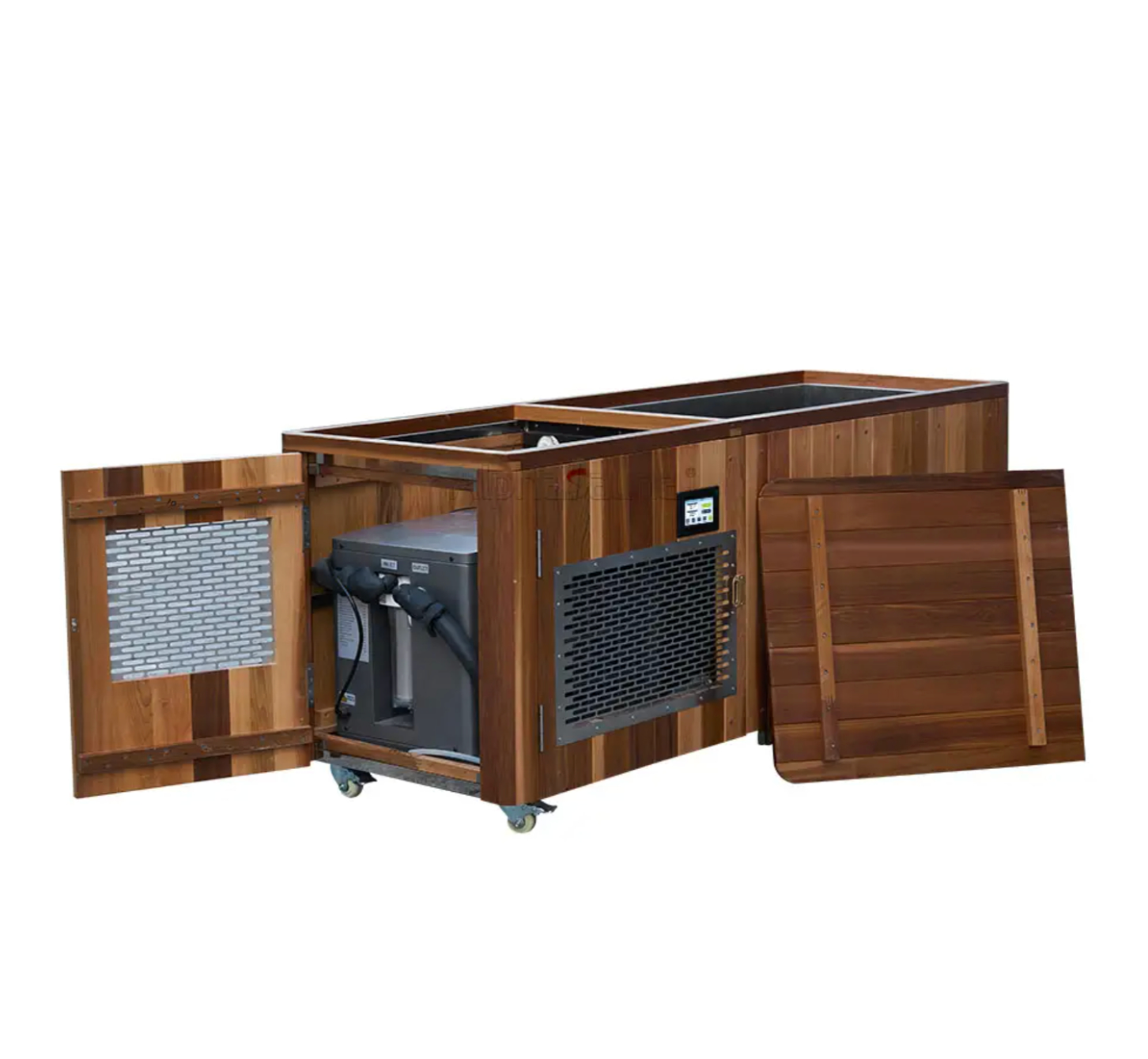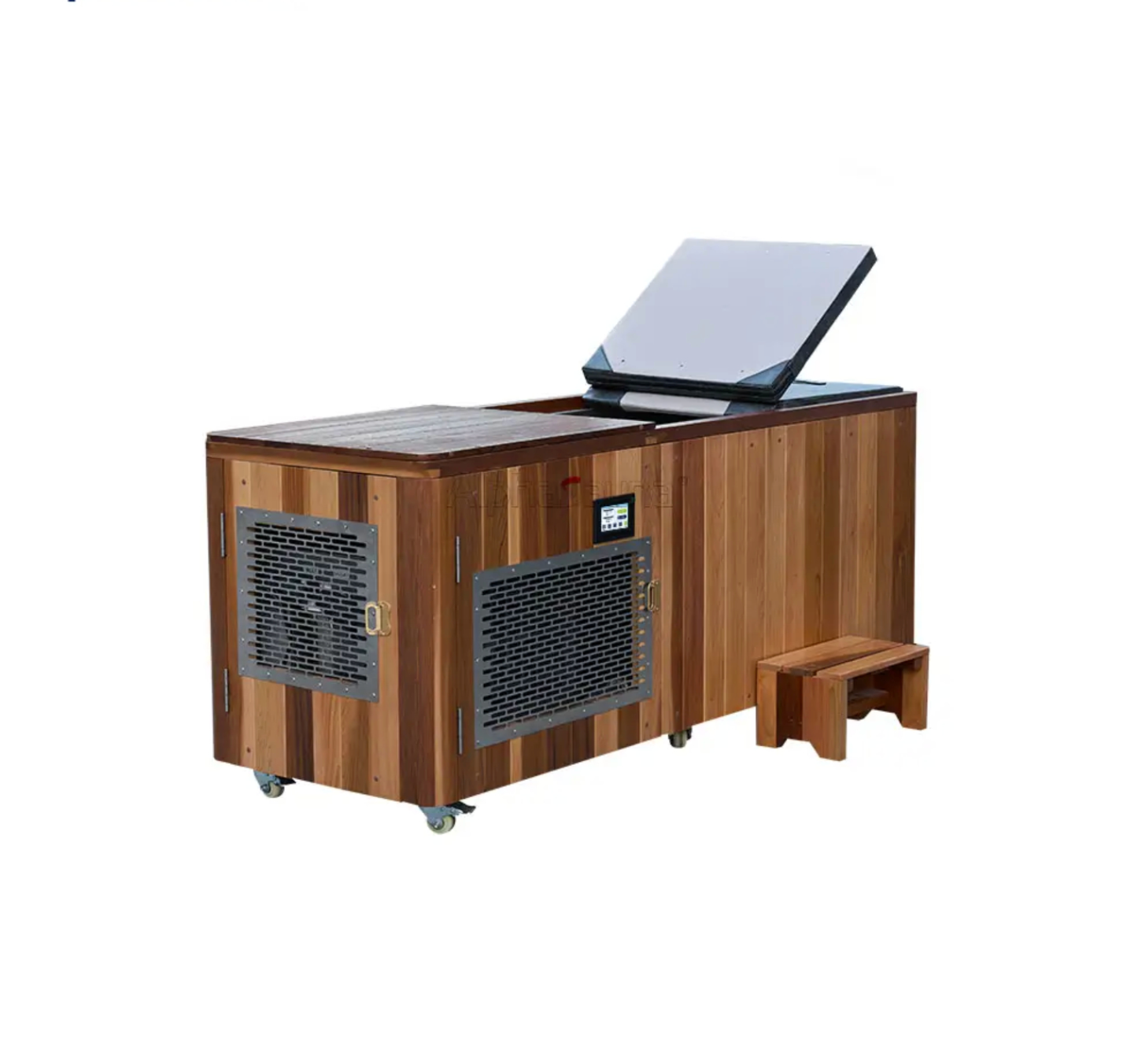 Opplev ekte restitusjon og fornyet energi. Dette cold-plunge-karet kombinerer naturlig treverk med rustfritt stål og kraftig kjølesystem — perfekt for deg som vil optimalisere restitusjon, stressnivå og velvære.